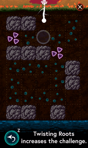 Roots is a unique puzzle game where you play as a tree trying to collect fertilizer and reach the water. You can only move on each tile once. Obstacles and fertilizer itself act as challenges. Collect all the fertilizer to master a level.